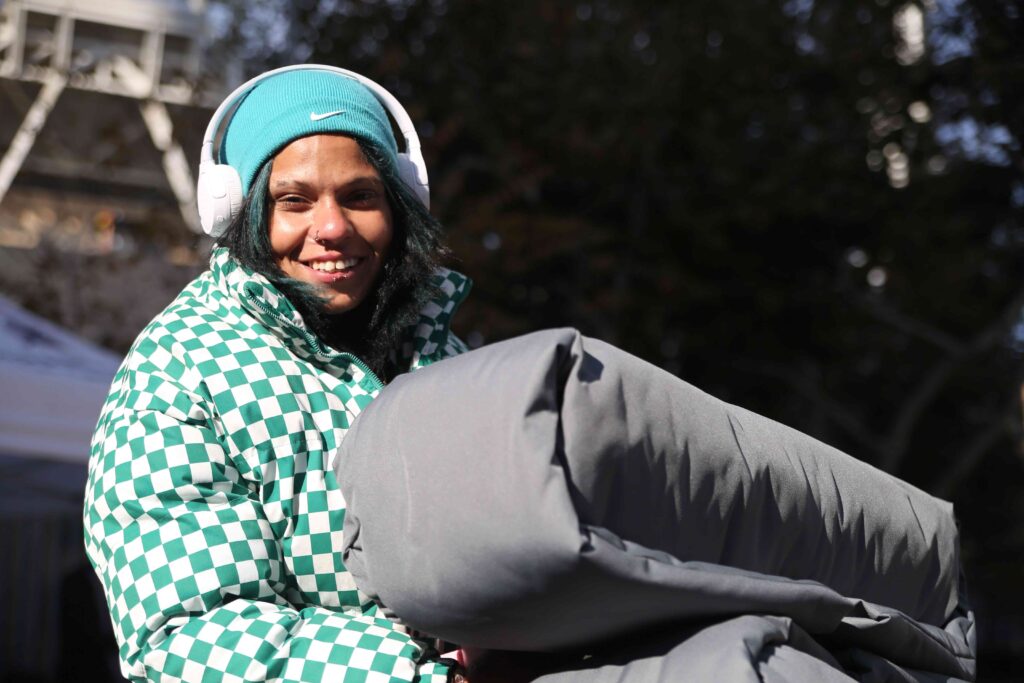 These weather-resistant coats are manufactured by formerly homeless parents and transform into sleeping bags to provide reprieve and protection from the cold pavement. It is the least we can do while we encourage our elected officials to add inclement weather shelter beds.